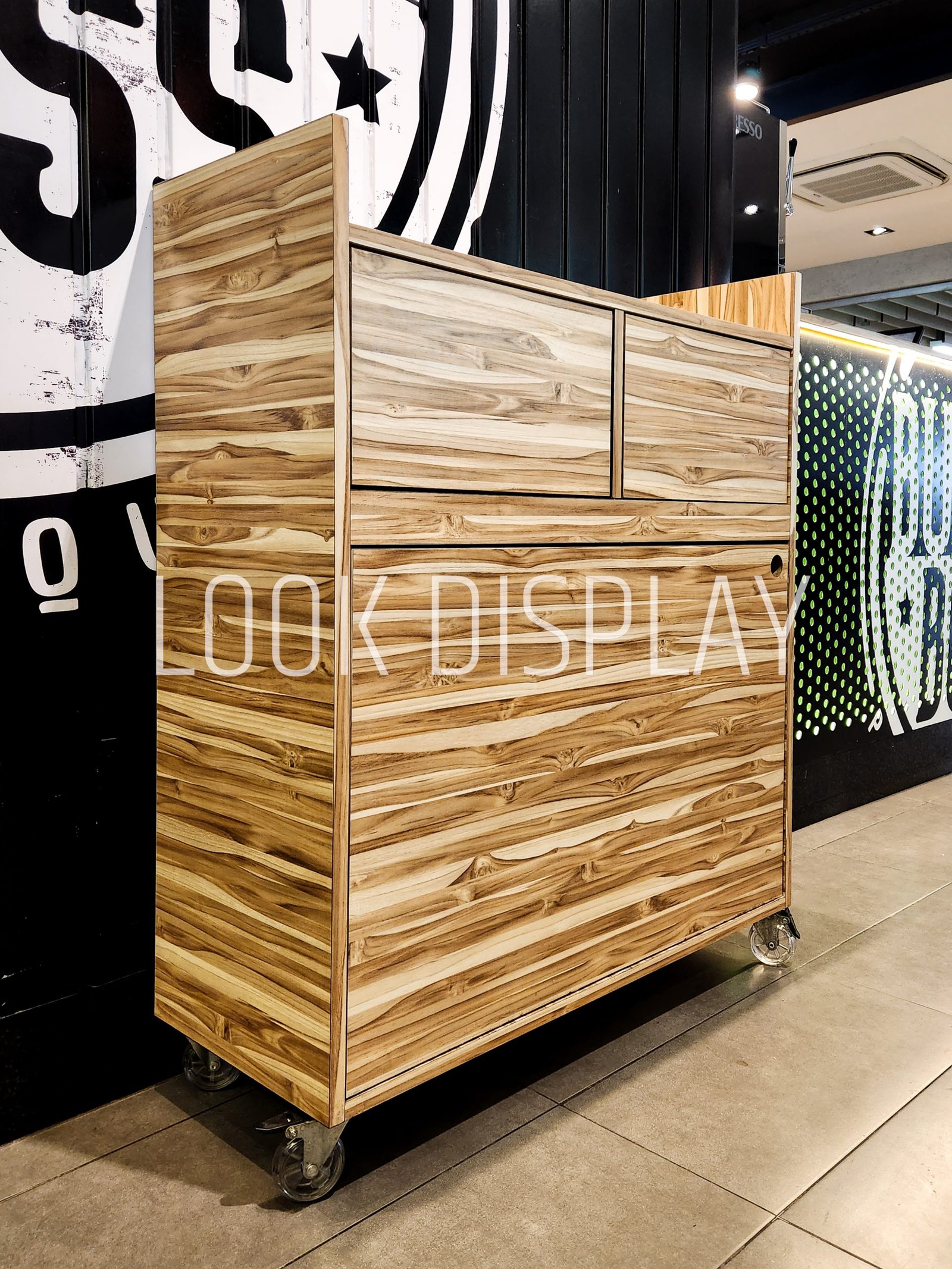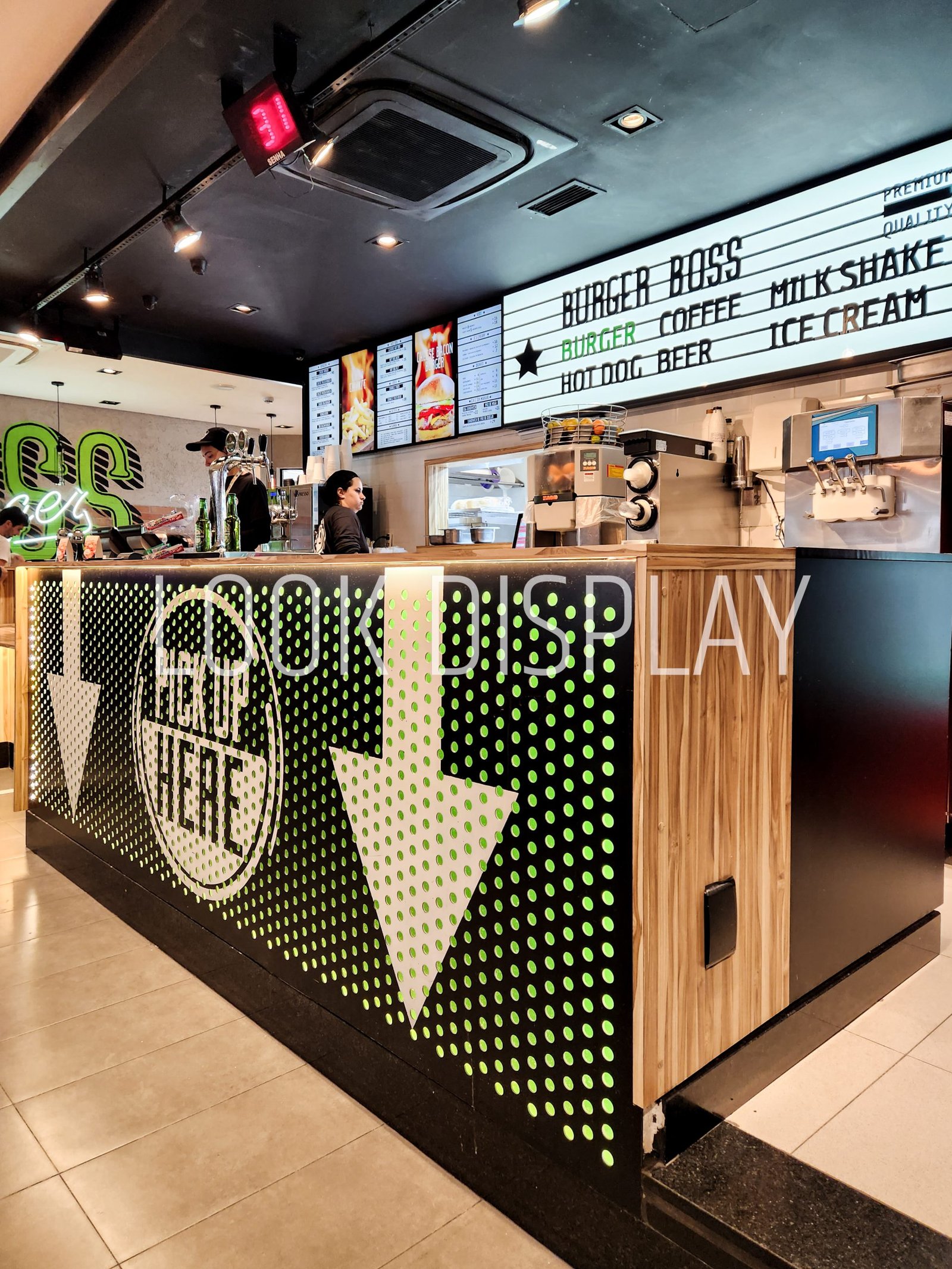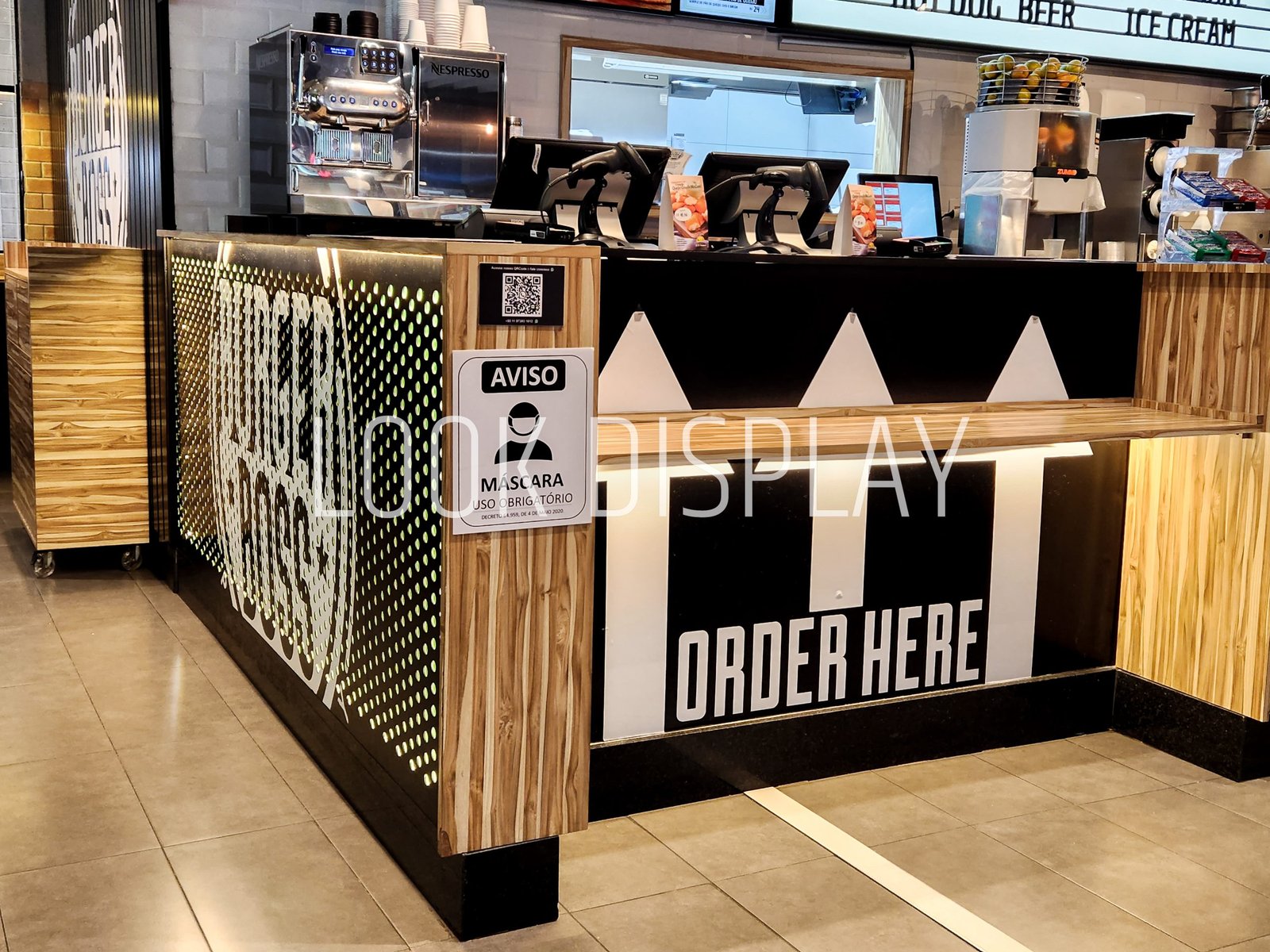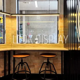 A Look Display, antiga Instantshop, foi responsável pela execução completa dos mobiliários desta unidade, em parceria com a construtora encarregada da obra. A partir do caderno executivo da marca, desenvolvemos e instalamos todos os mobiliários de atendimento e serviço, com destaque para os balcões operacionais com acabamento madeirado e aplicação gráfica, estações de apoio móveis com rodízios, bancadas de consumo rápido e mesas de atendimento integradas ao conceito visual da franquia.