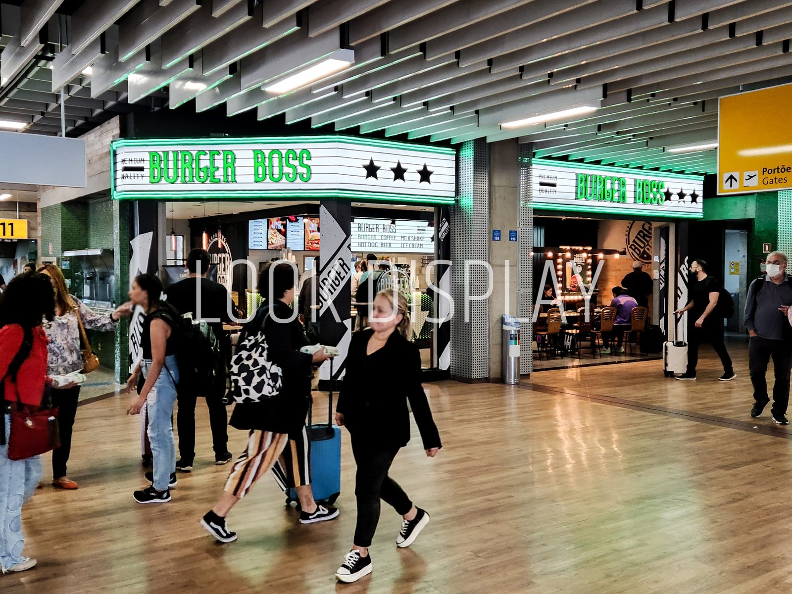O projeto da Burger Boss no GRU Airport alia funcionalidade e impacto visual em um ambiente de alto fluxo. A execução precisa dos mobiliários reforça o posicionamento da marca, garantindo fluidez na operação e uma experiência confortável e coerente com a identidade do restaurante.