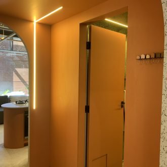 Cada ambiente foi pensado para oferecer funcionalidade sem abrir mão da estética e do conforto. O trabalho de execução minucioso garantiu fidelidade ao conceito proposto pelo projeto, com marcenaria customizada, instalação precisa e integração harmônica entre os materiais Guararapes e os elementos construtivos. O resultado é uma casa-conceito viva, acolhedora e funcional, em sintonia com o novo morar.