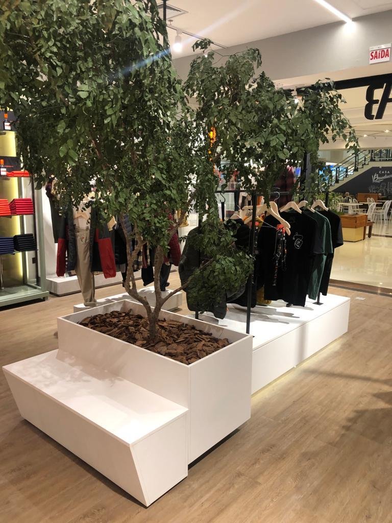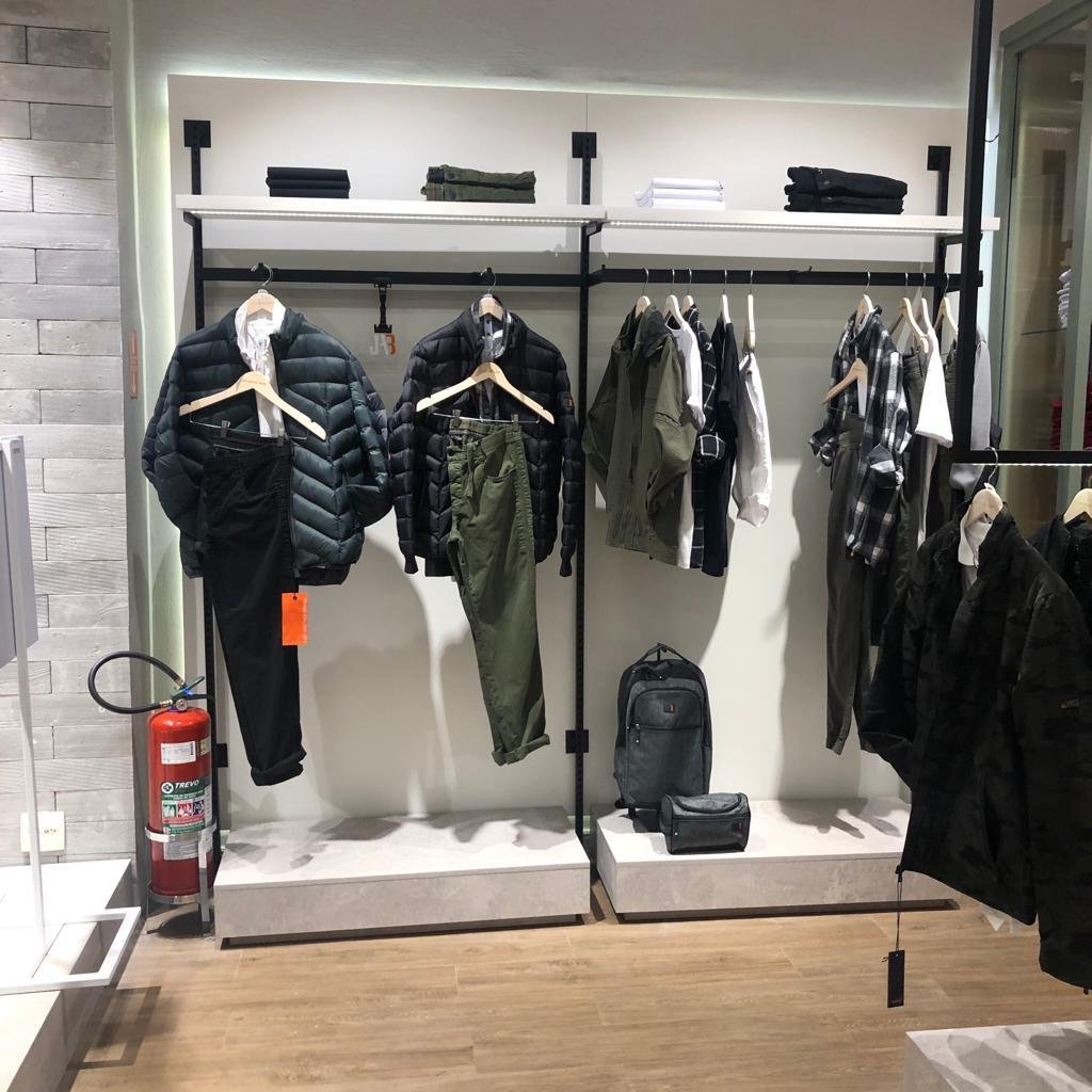 A Look Display foi responsável pela execução completa dos mobiliários da loja, a partir das diretrizes estabelecidas pela equipe de arquitetura da marca. O escopo incluiu a produção e instalação de expositores, nichos, araras e painéis sob medida, além de mobiliários especiais como o banco com floreira integrada. Todos os elementos foram concebidos para garantir praticidade no dia a dia da operação, mantendo a estética clean e industrial valorizada pela JAB.