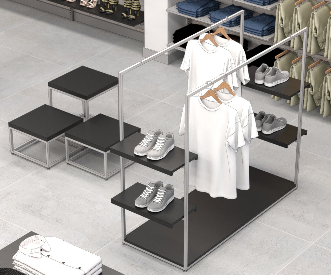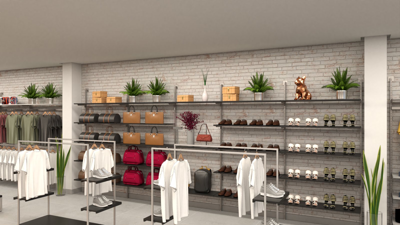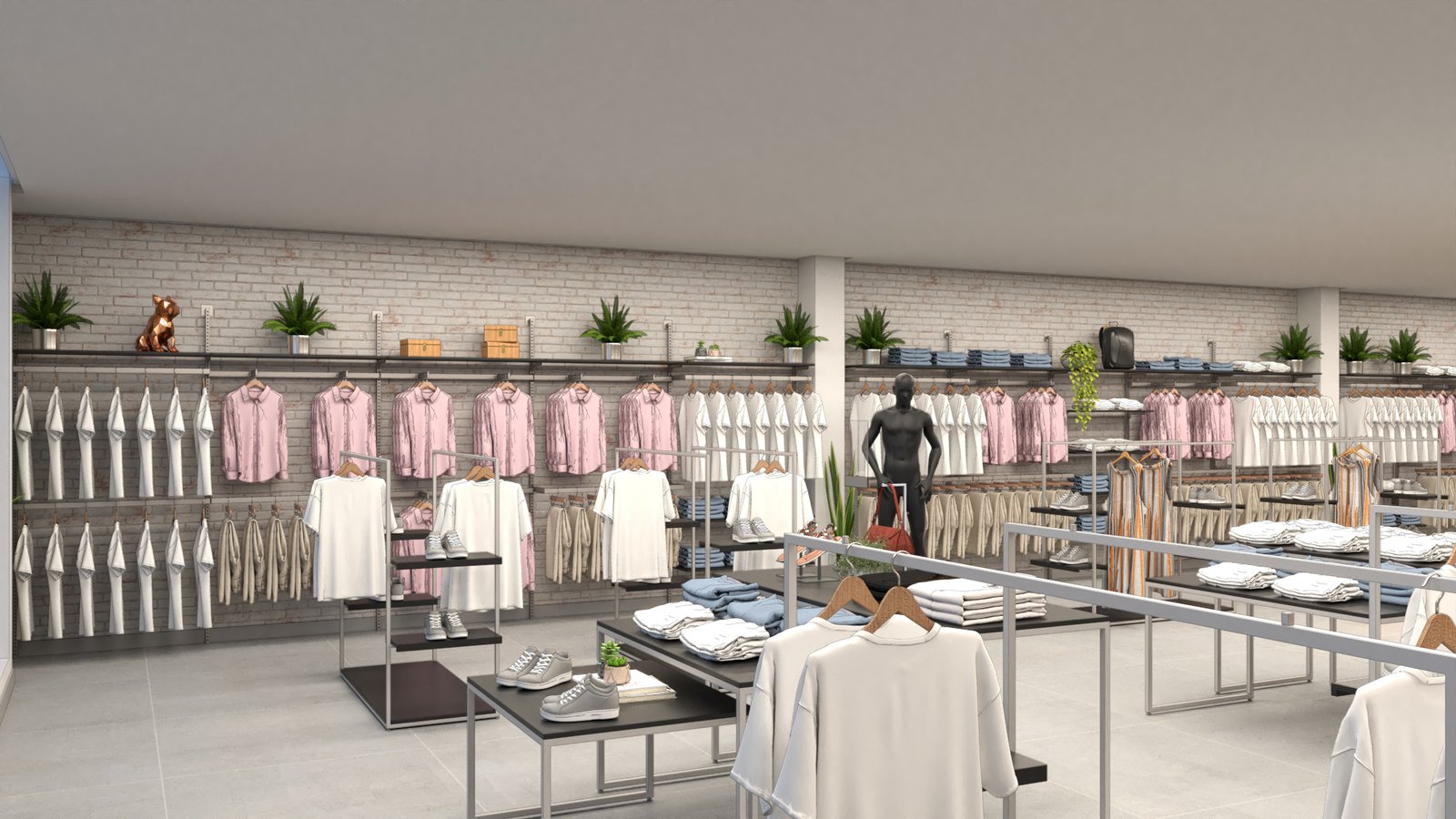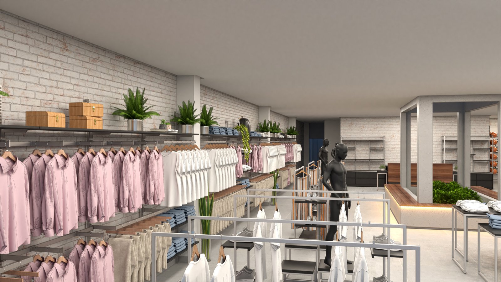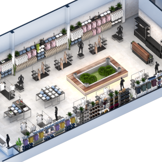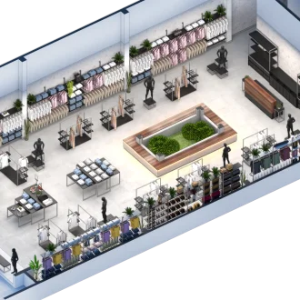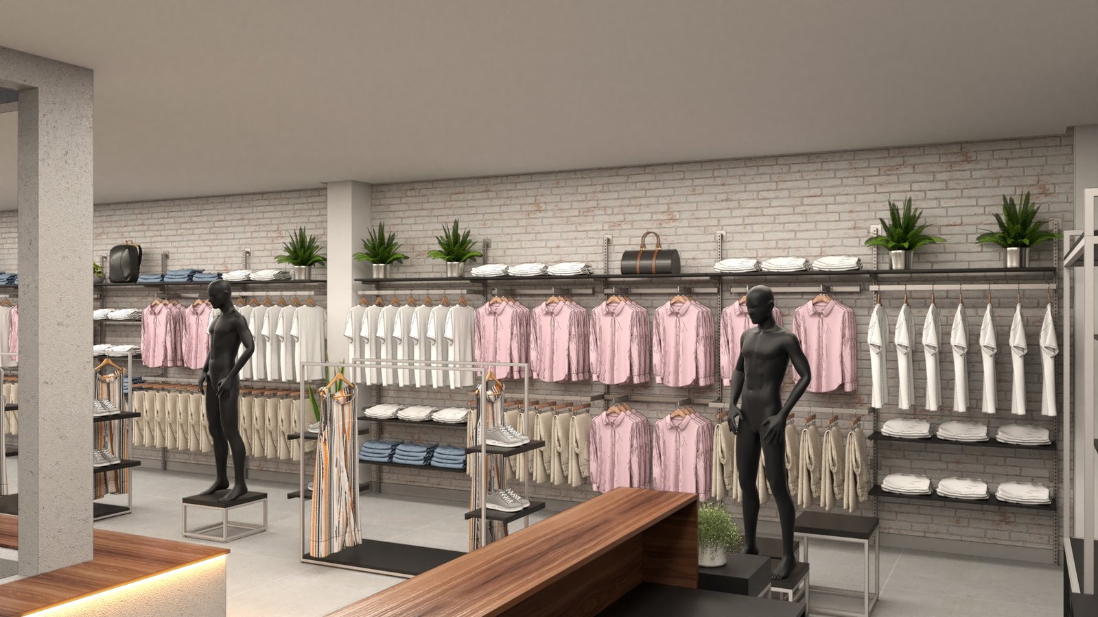 Estudo de layout para a loja LULU MODAS, com proposta clean e sofisticada voltada à moda feminina. O projeto equilibra elementos clássicos e contemporâneos, promovendo um ambiente acolhedor e fluido para o cliente final.
