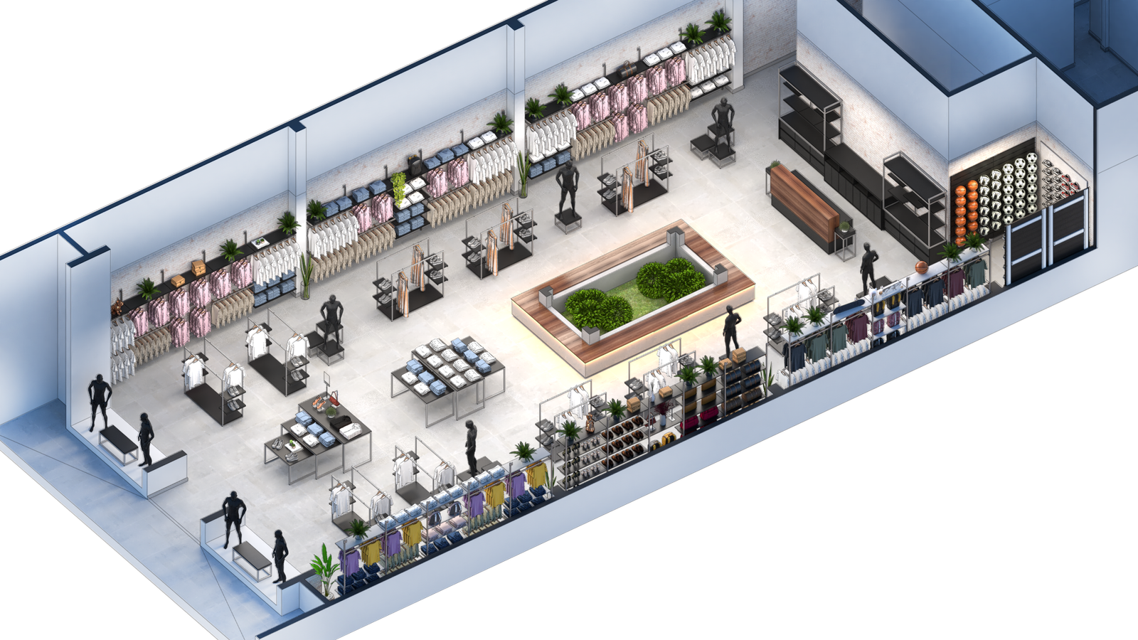 - Integração entre caixa, exposição e circulação sem barreiras visuais