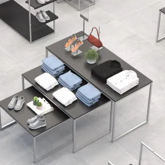 - Mesas expositoras para enfoque de promoções